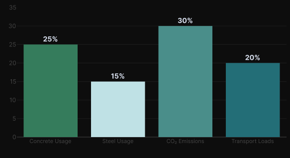 Faster execution with reduced on-site waste and lower concrete usage and transportation — minimizing immediate environmental impact.